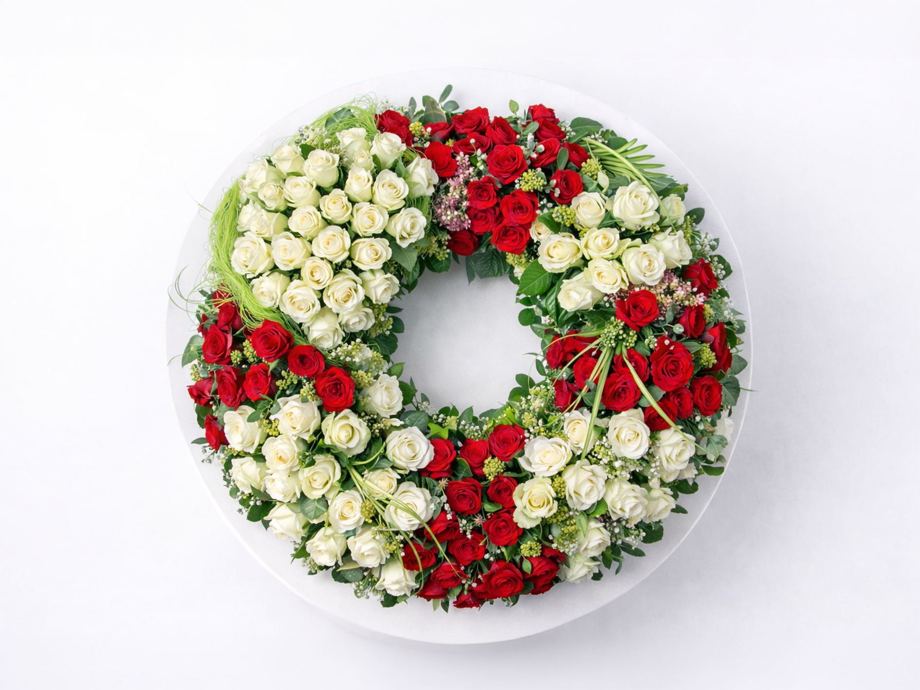 Rundgesteckter Kranz RK 40 rot´weiße Rosen